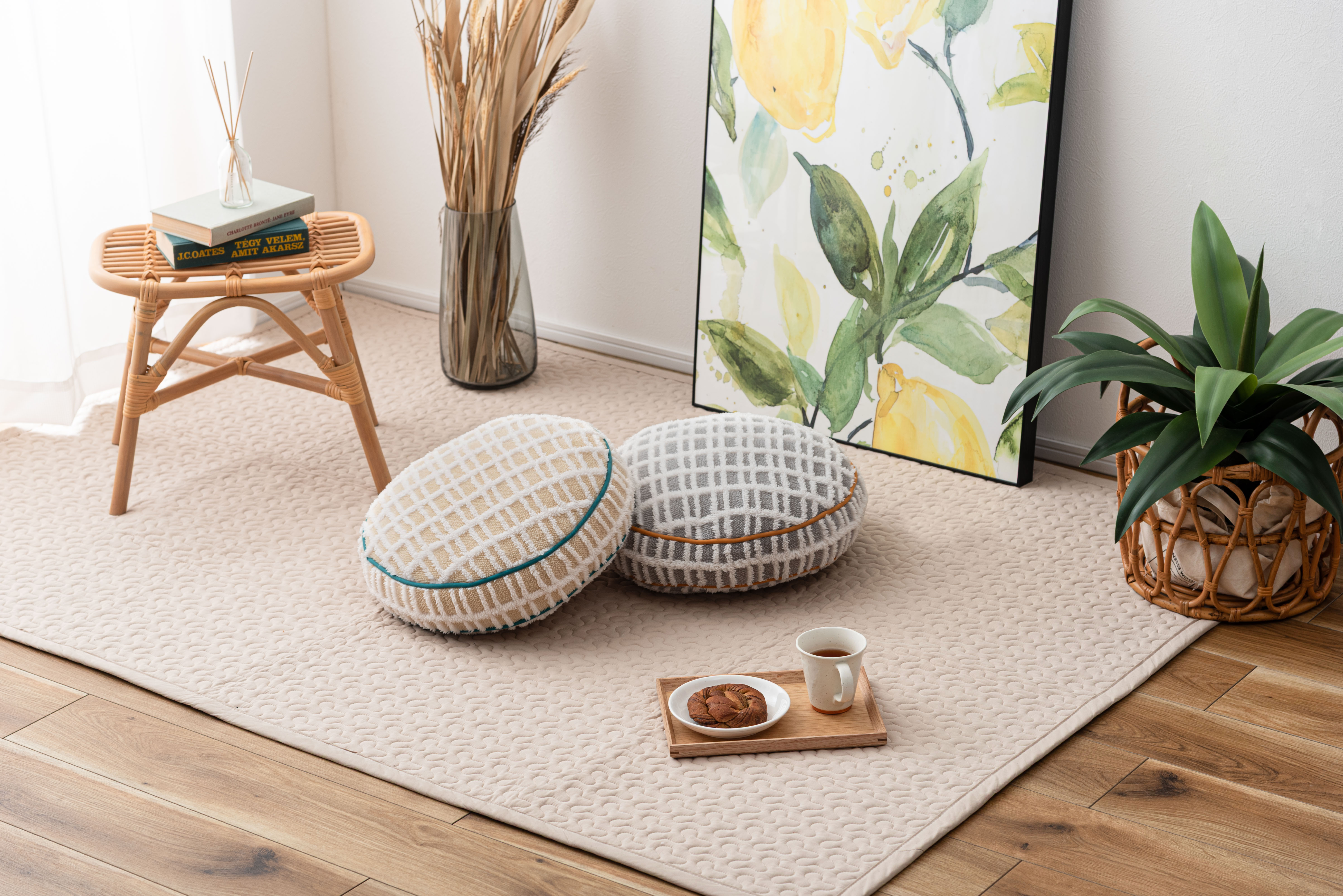 ●直径約34cmのほど良い大きさなので、ソファの背もたれ用として、読書用の腕置きクッションとしても便利。