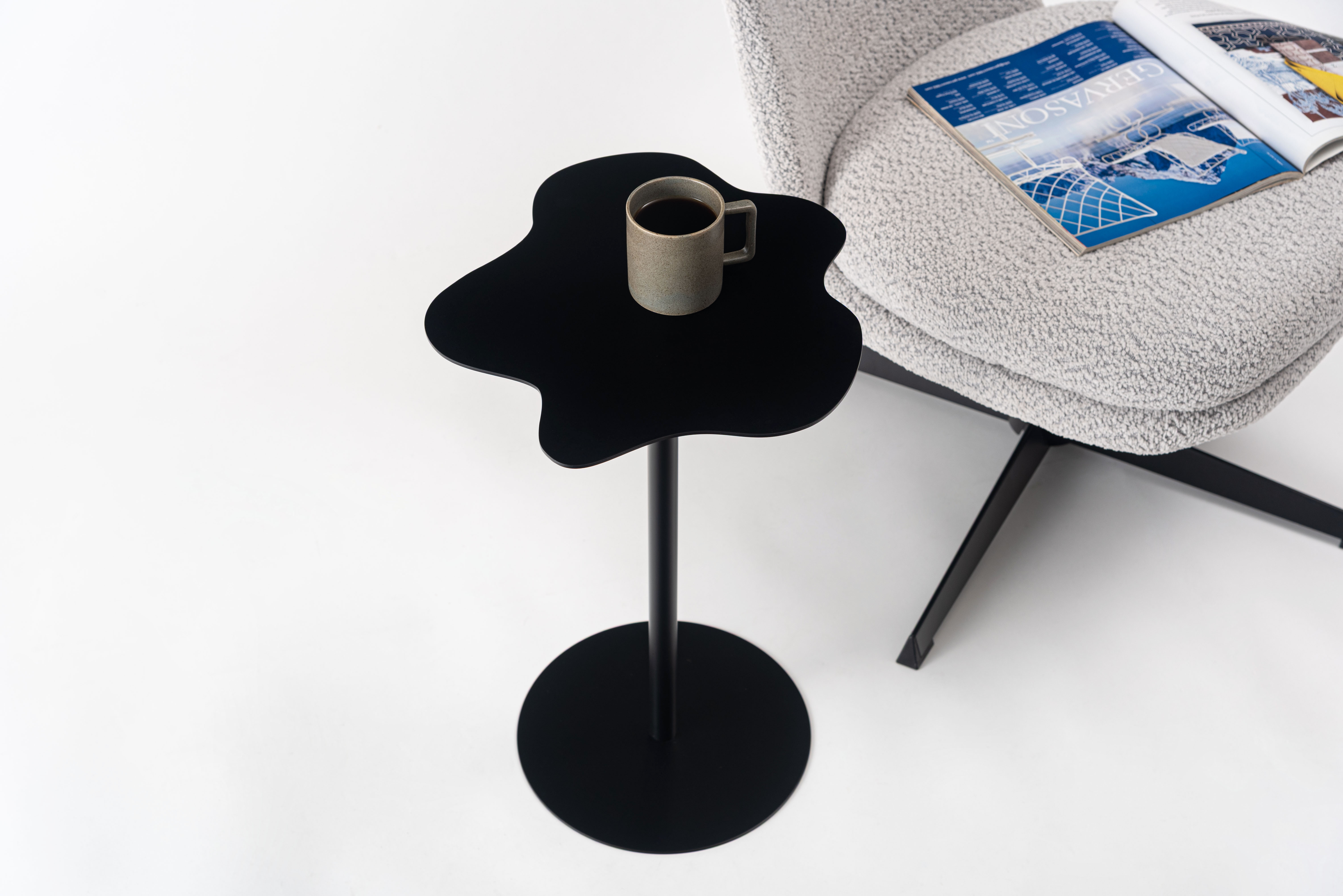 雨上がりの庭にできた水たまりをイメージしたプドルサイドテーブル。