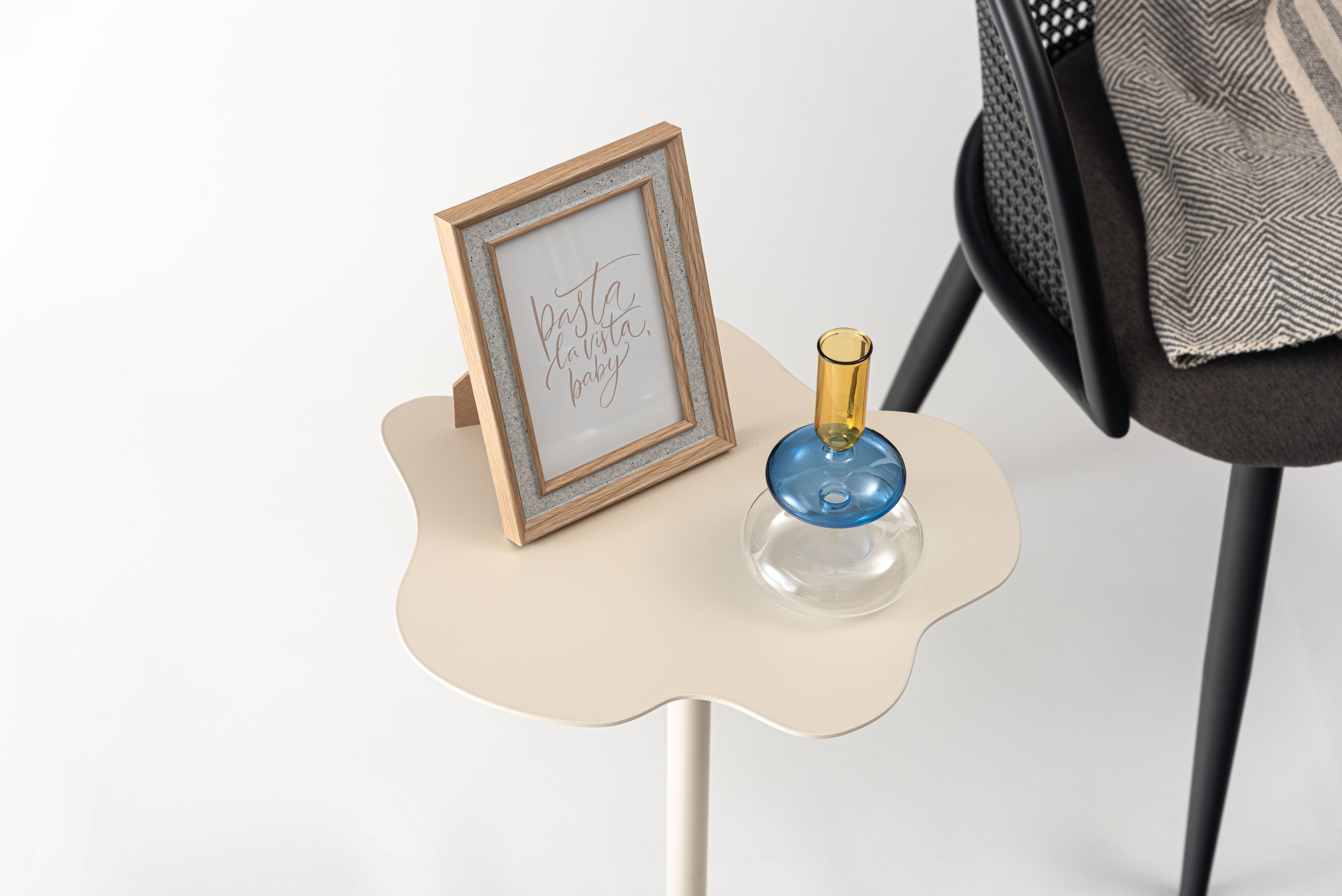 雨上がりの庭にできた水たまりをイメージしたプドルサイドテーブル。