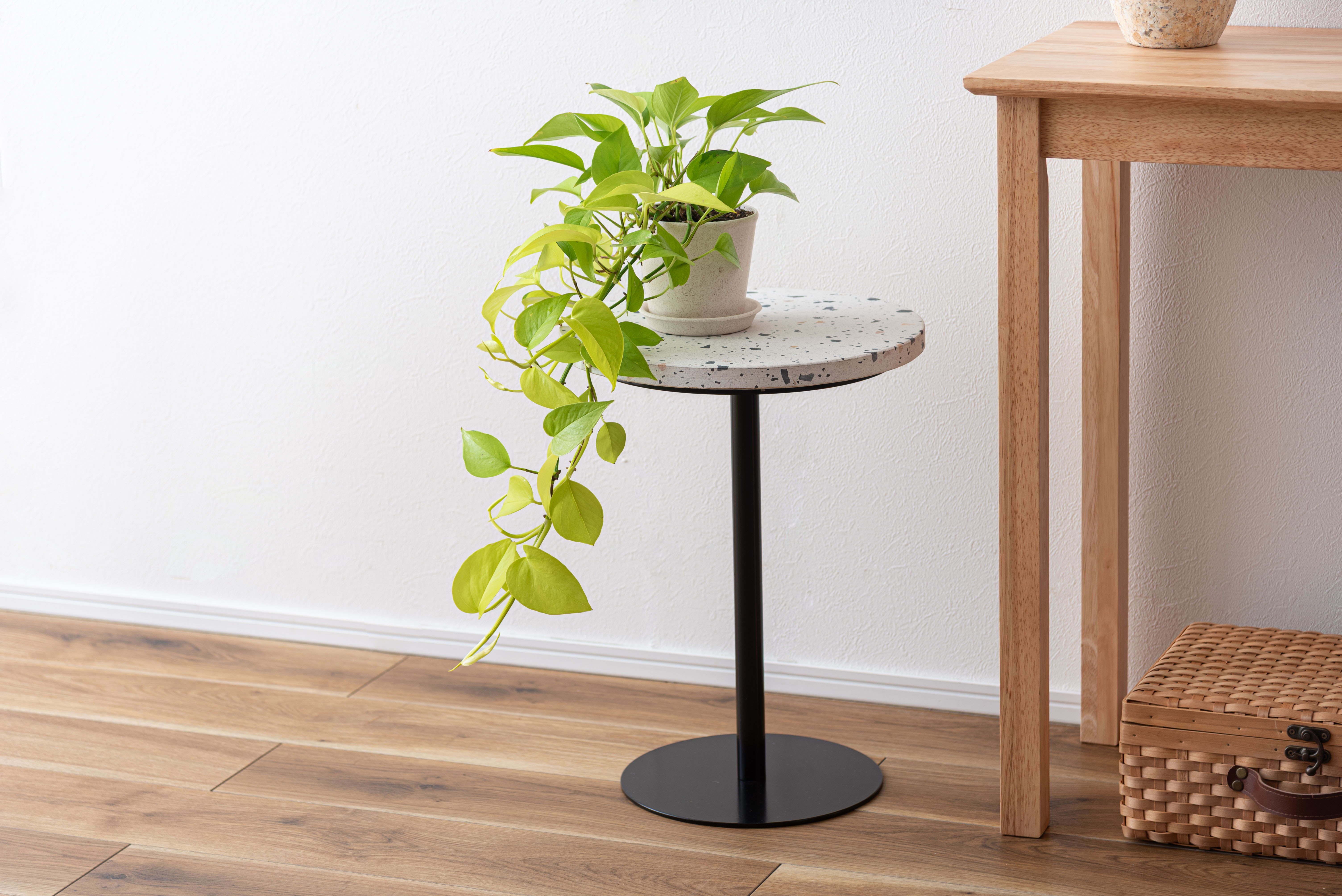●人造大理石(テラゾー)を使用したサイドテーブル。