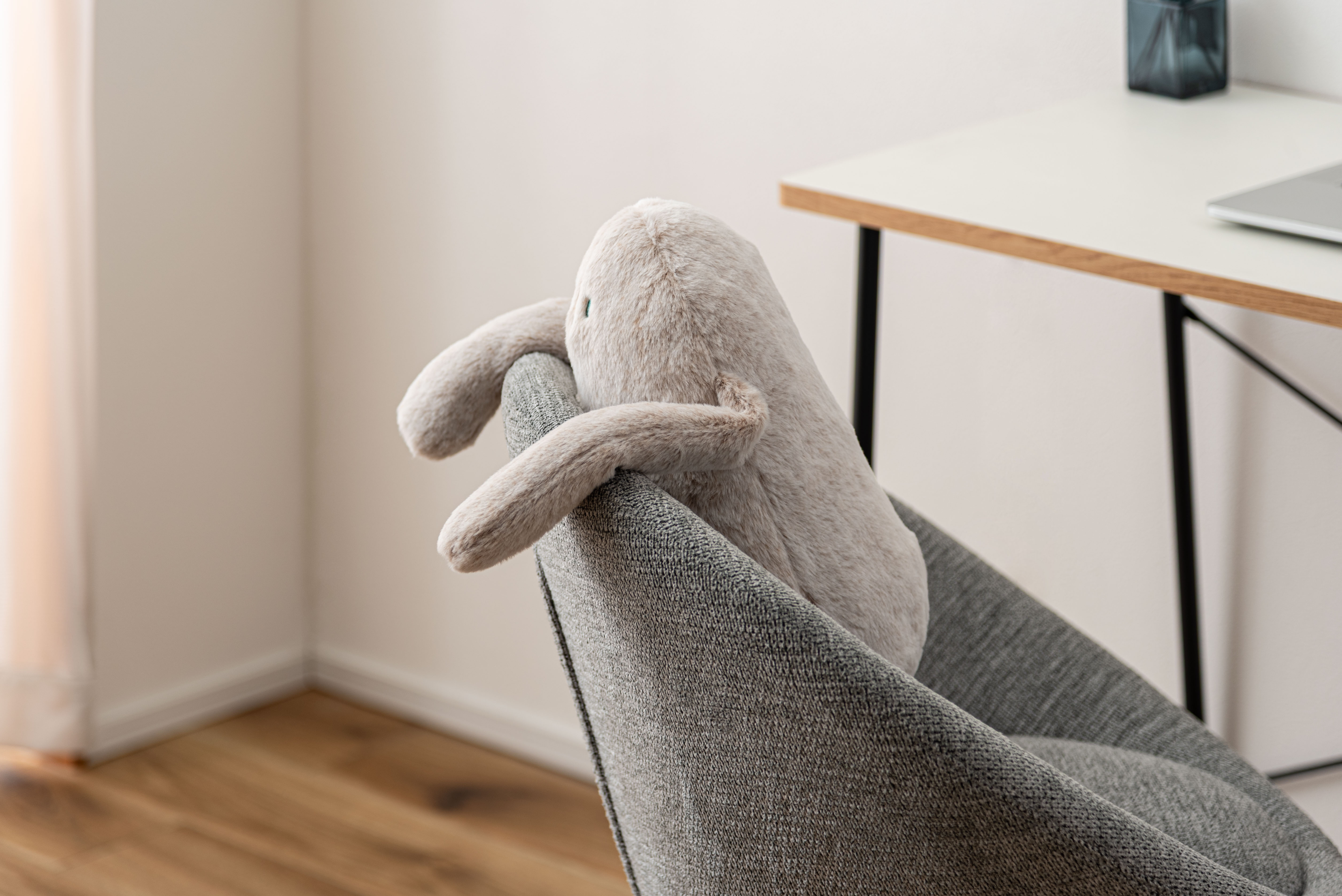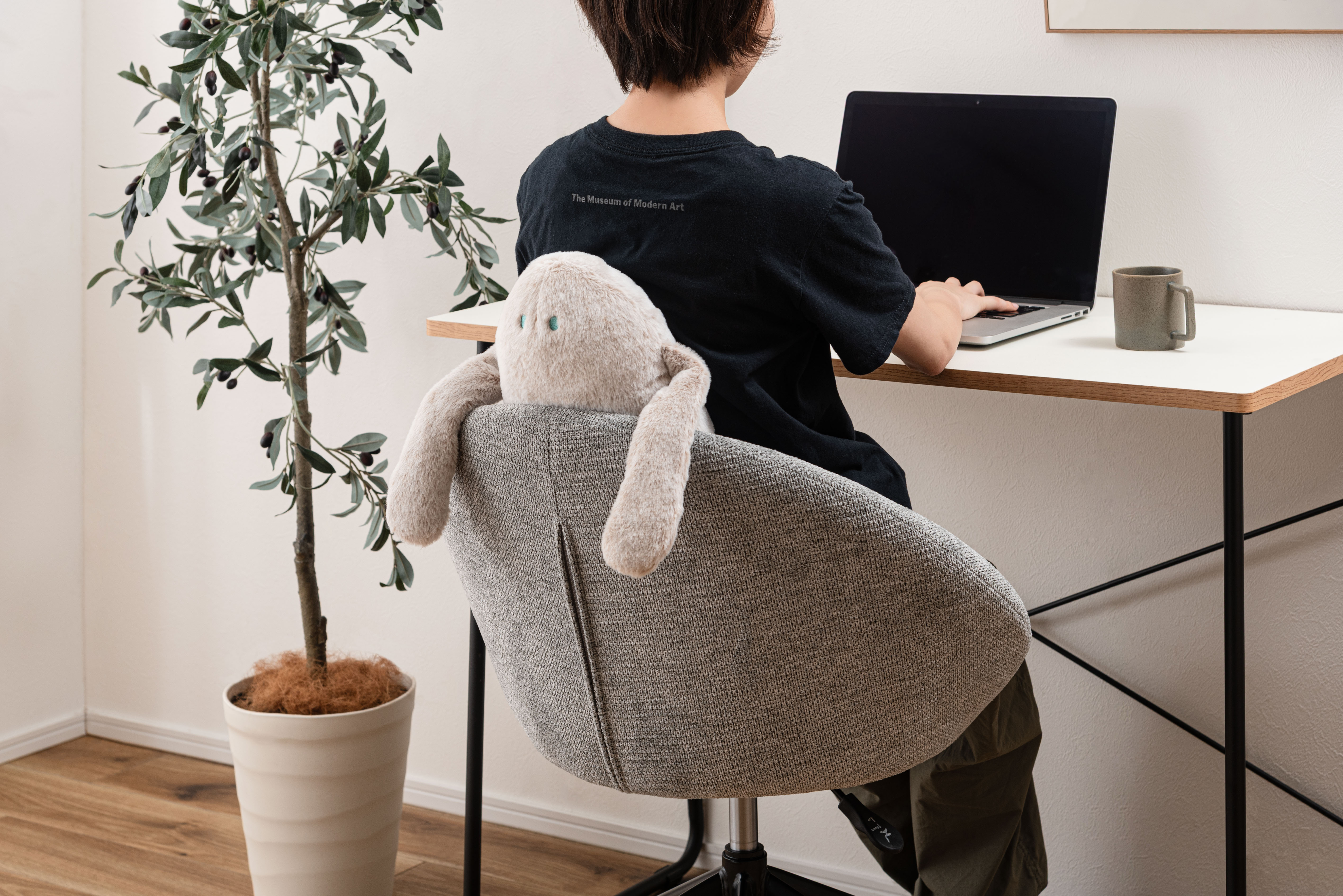 軽く重みを持たせた手の先が、背もたれに掛けたときの安定感をサポートしてくれます。